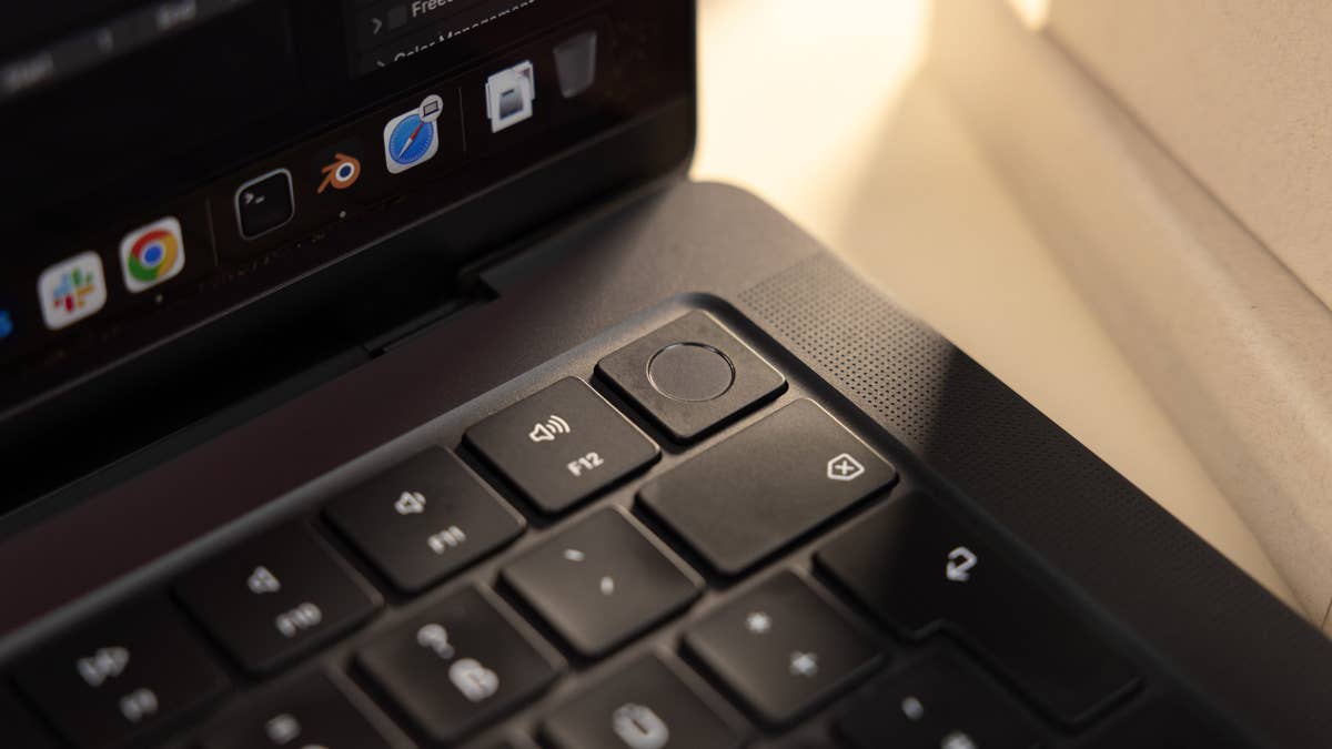 At the top right of the keyboard is a fingerprint reader that reliably and quickly unlocks the MacBook Pro or can be used to confirm purchases in the App Store.