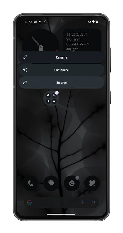 In Nothing OS, you can change the size and look of the application folders on your home screen. You can enlarge the size of your folder icons but you can also change the shape of the folder icon and the arrangement of app icons within the folder. It’s not the feature of the century, but I like it a lot because it brings variety to my home screen.