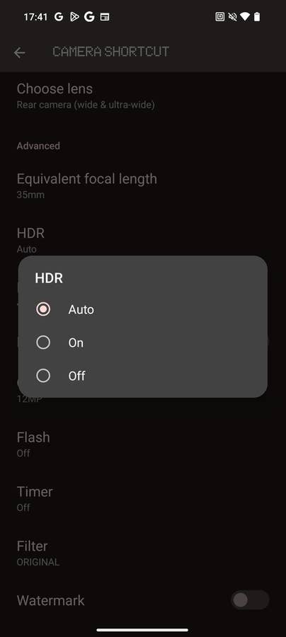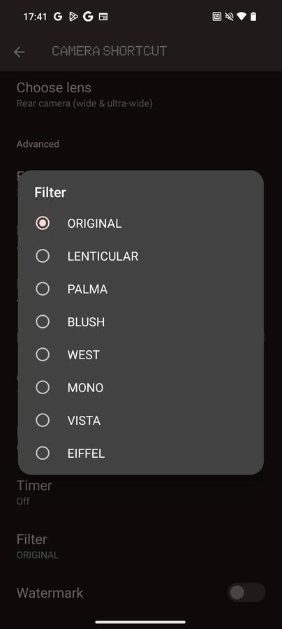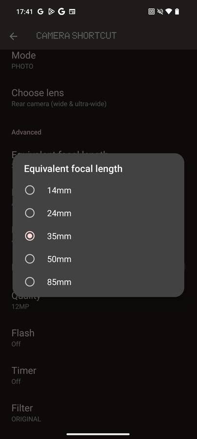 The settings enabled by Nothing are very precise. Not only can you choose which lens and mode you want to use by default, but also the focal length, filters, and so on.