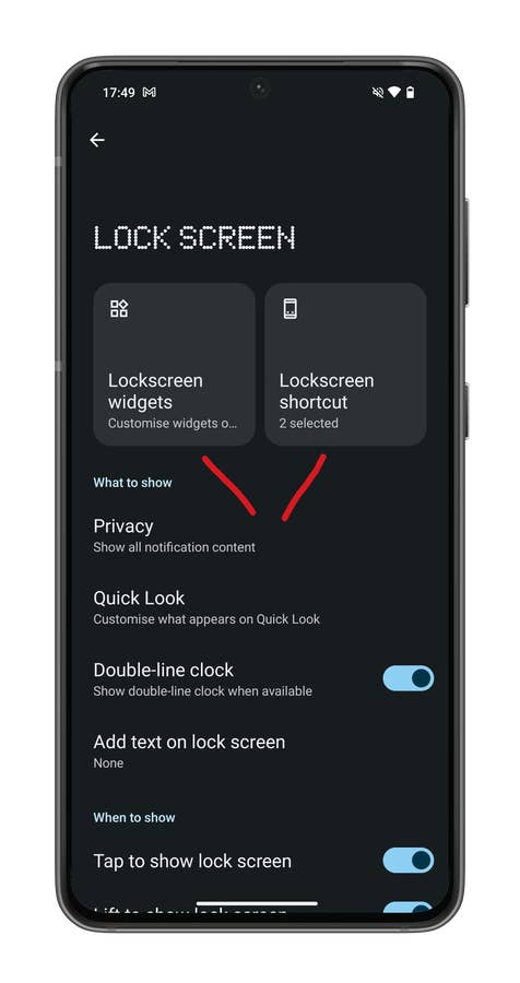 - Select Lockscreen widgets or Lockscreen shortcut.
