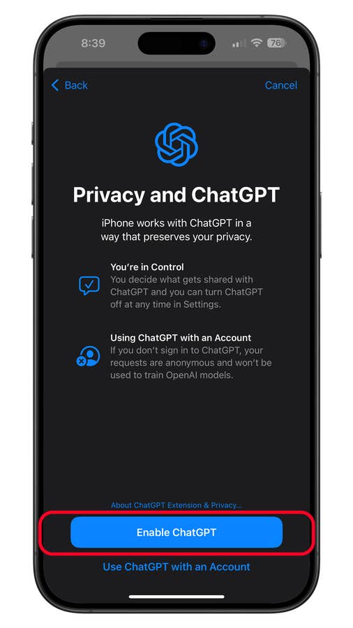 To use ChatGPT alongside Siri on a compatible iPhone, you’ll first need to activate the integration. Here’s how to set it up: