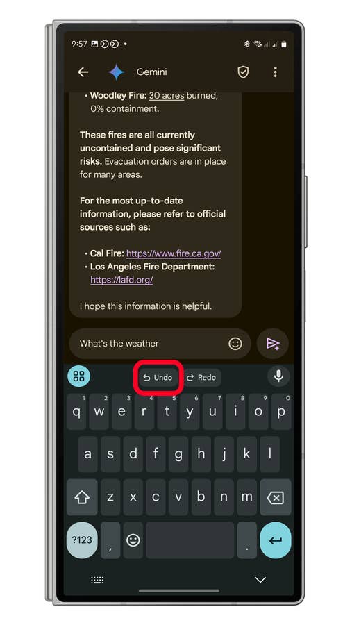 - While typing with Gboard, tap the Undo button on the toolbar.