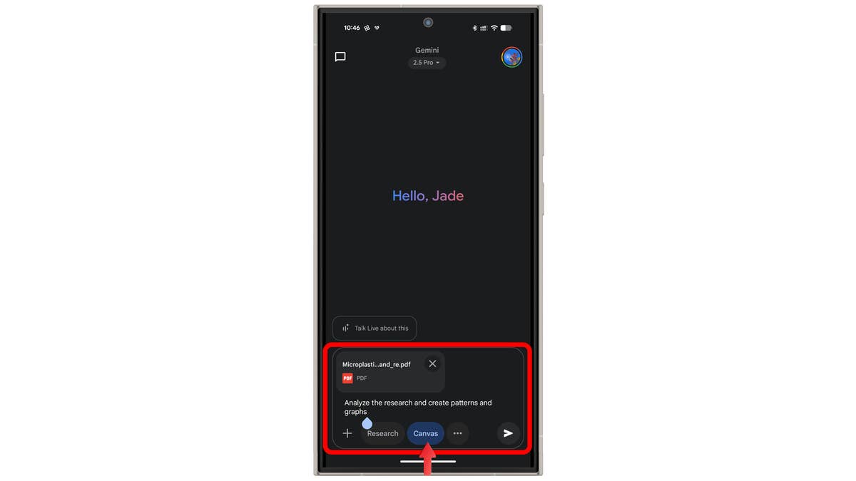 - Tap the “more” button (often a “+” icon) in the prompt bar and select Canvas.