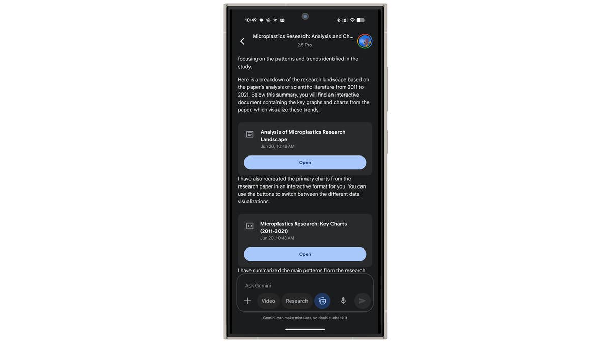 Deep Research is a newer model in Gemini designed to synthesize large datasets from the web and generate research reports. Users can edit plans before creation, refine reports, discuss findings, and ask follow-up questions. Deep Research is now available to all Gemini users—a useful tool for professionals and students alike.
