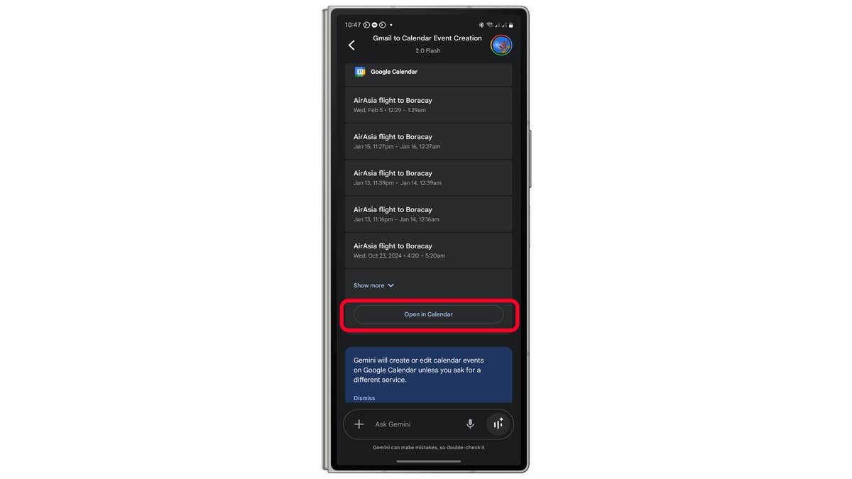 - Ask Gemini to pull flight details or schedules from Gmail.