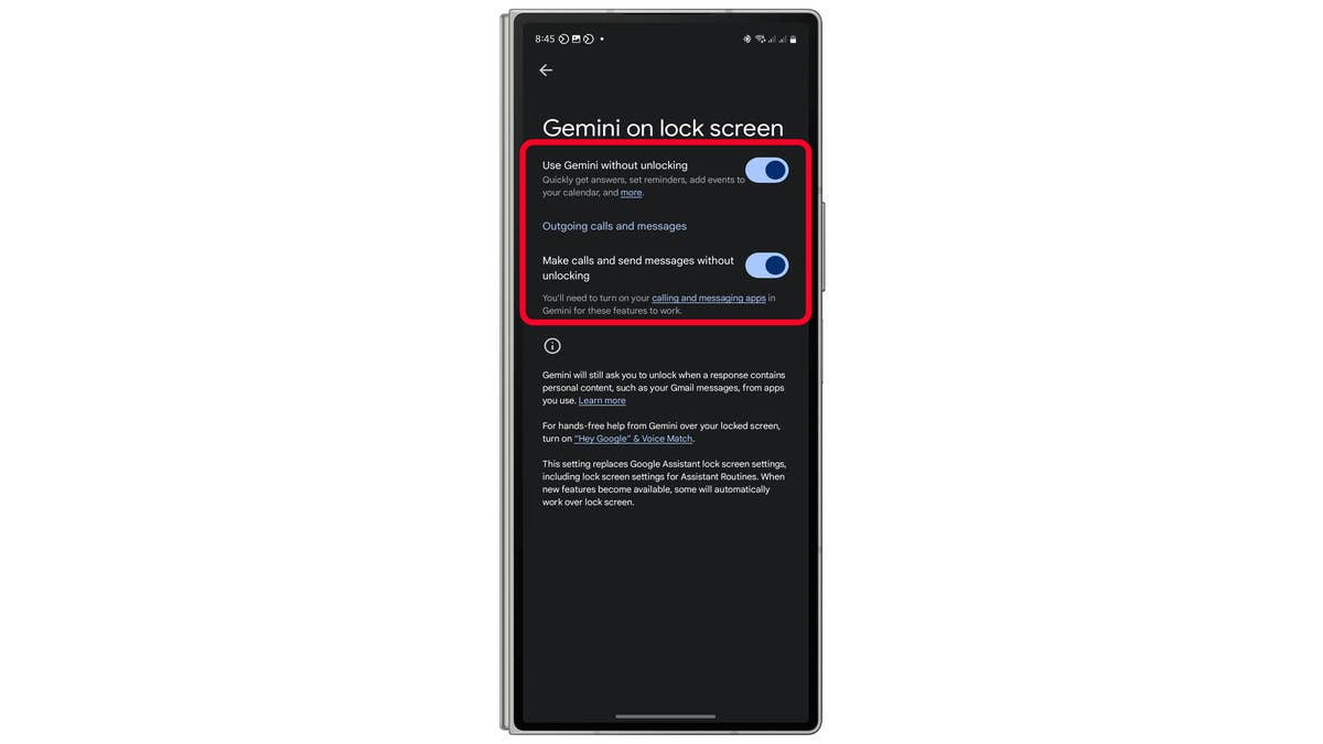 Gemini carries over Google Assistant’s lock screen capabilities like setting an alarm or calendar event, reading notifications or answering calls, allowing users to perform tasks without unlocking their device.