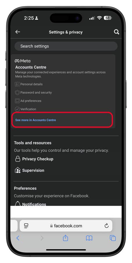 - Alternatively, go to accountscenter.facebook.com to skip steps 1 to 4.