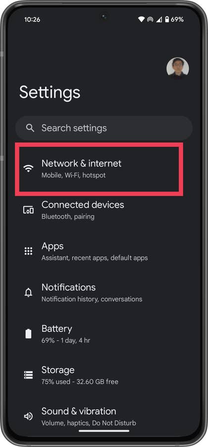 Open the Settings app and select the ‘Network u0026 internet’ option.