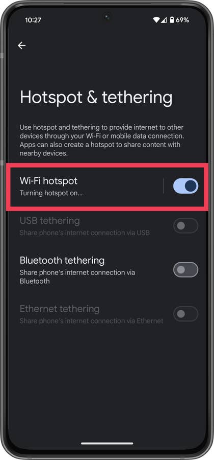 - Go back to the connectivity or quick settings then turn on Wi-Fi hotspot.