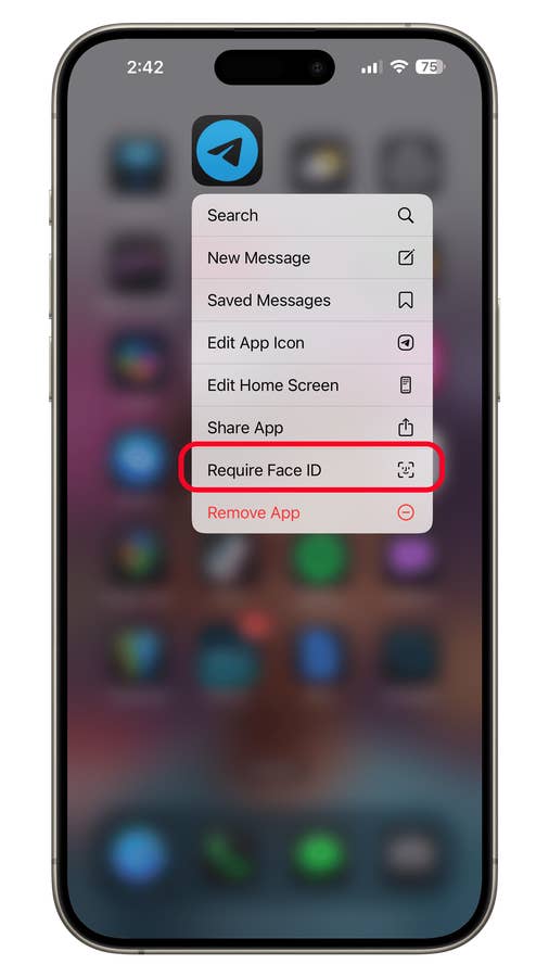 - On your iPhone’s Home Screen, touch and hold the app icon you want to secure.