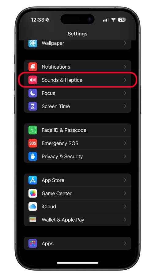 - Scroll down and tap Sounds & Haptics.