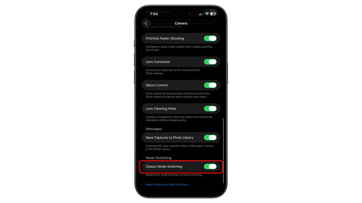 Scroll down and look for Classic Mode Switching. Toggle it on.