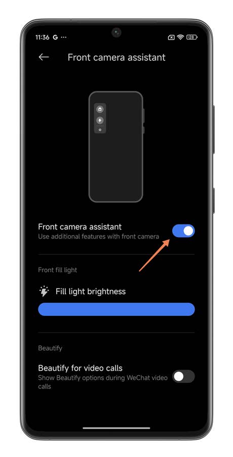 Xiaomi offers you an option in the settings to illuminate your smartphone’s screen with a circle that functions as a flashlight or torch. This makes your night selfies a little more detailed without sacrificing the natural look of the shot. You can also use this function (dubbed Fill Light) for your video calls on WhatsApp or other apps.