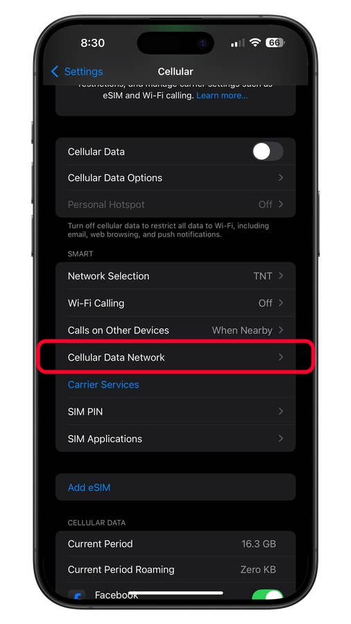 If you have an iPhone or iPad, APN is labeled simply as Cellular Data Network. Here’s where’s it found and how to reset it on an Apple handset: