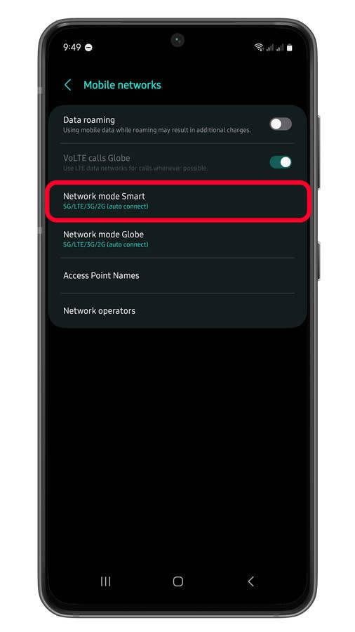On Android devices, you can choose a preferred network type. Just head to the Mobile networks options or search for it then change your SIM’s network type to 5G or 4G.