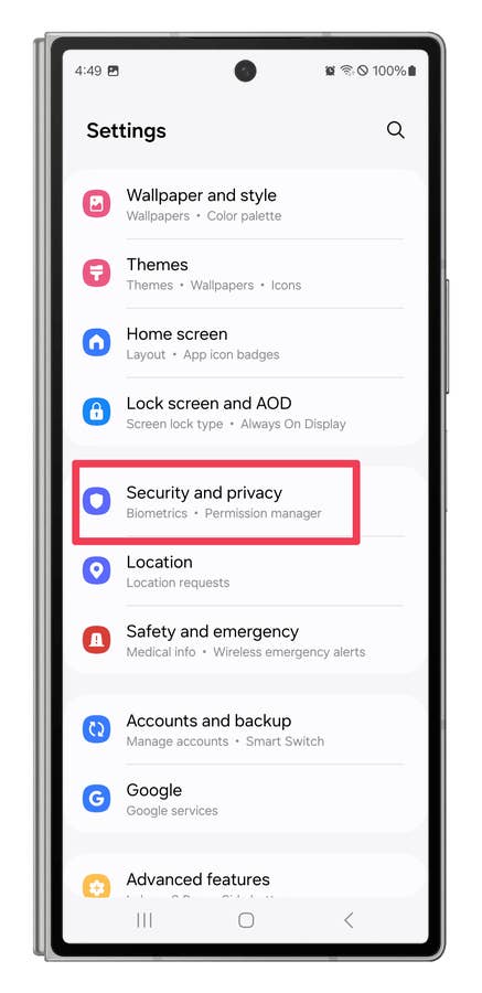 Open the ‘Settings’ app and select ‘Security and privacy’.