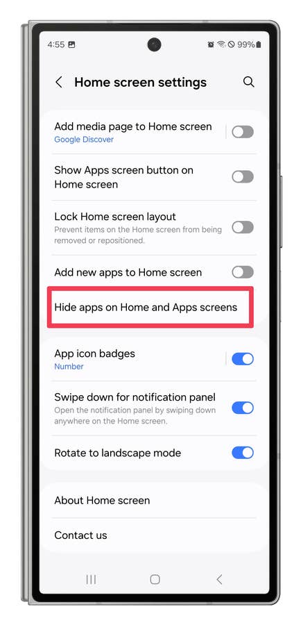 Deactivate all the switches labeled Lock screen, Home screen, and Screen ff.