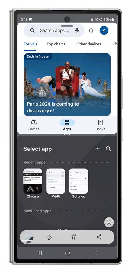 It’s the famous two-finger drag-and-drop gesture inaugurated on the Samsung Galaxy Z Fold 5. To use it: