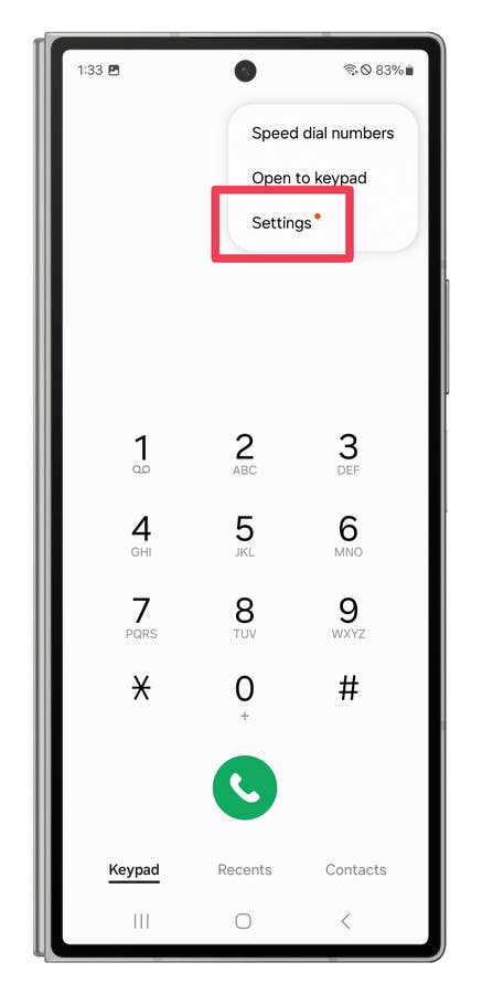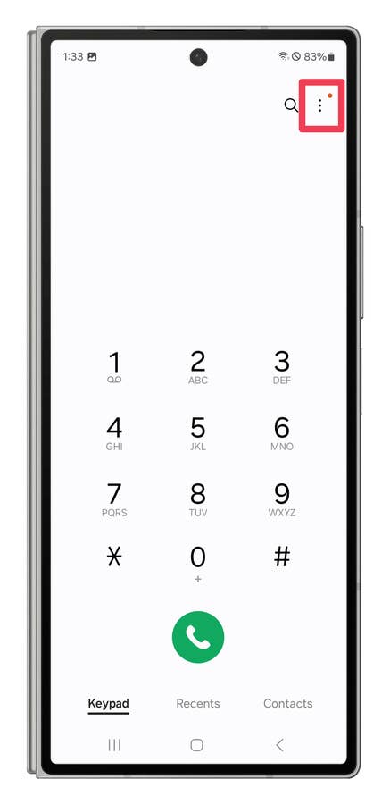 Now, press the Settings icon (⋮ or ⚙️) at the top right of the screen.