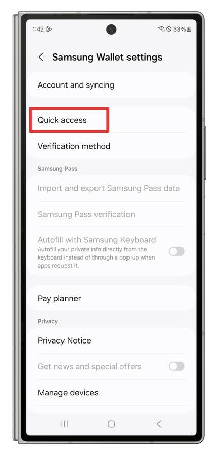 If you’d prefer to use another payment and virtual card management solution, you can disable Samsung’s native Samsung Pay and Samsung Wallet options.