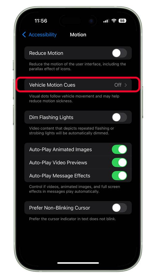 How to use iOS Vehicle Motion Cues on iPhone step 3