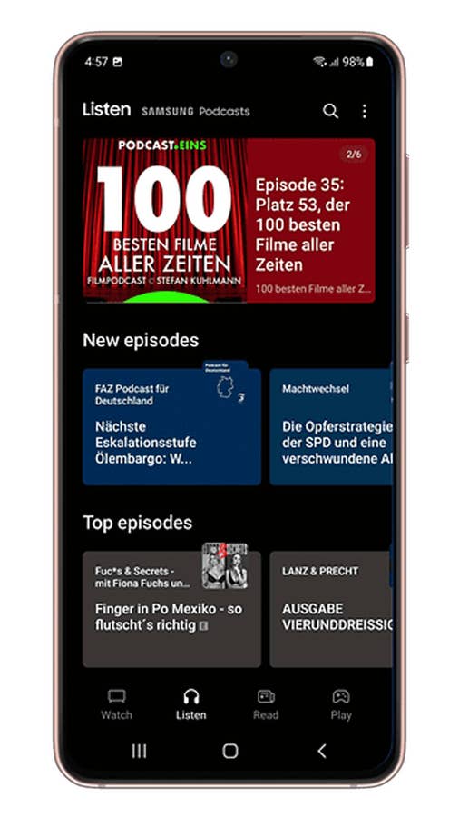 Beyond a news feed powered by Taboola, Samsung Free provides access to various types of content, including videos, live-streaming broadcasts, podcasts, and games.