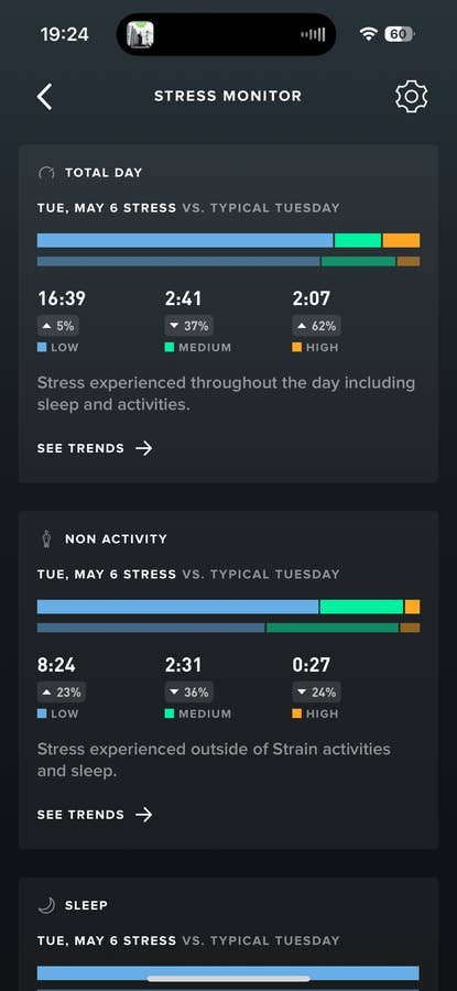 - Stress levels and lifespan metrics (available on Peak+ plans)