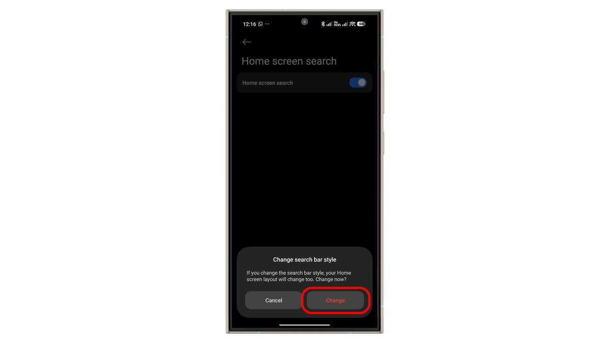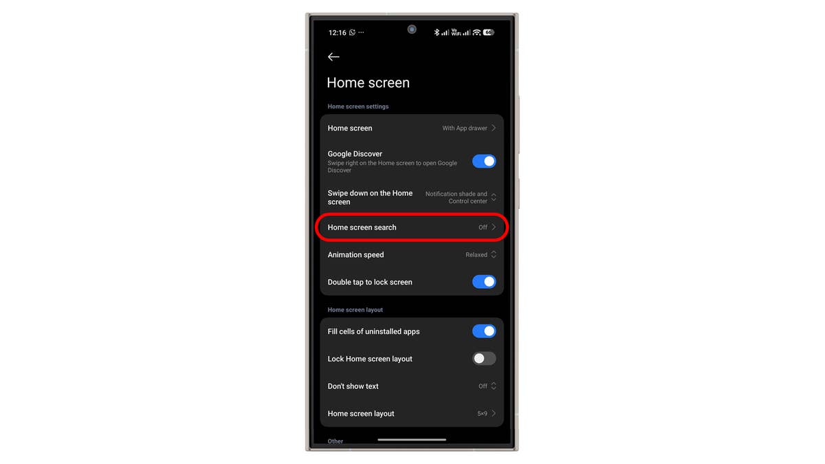 A handy new feature for those with many apps installed is the home screen search bar. Once activated, it replaces the default sticky Google Search widget, though you can still add Google Search anywhere you like.