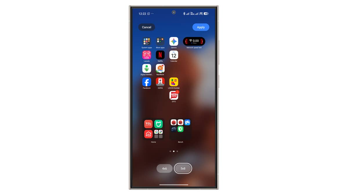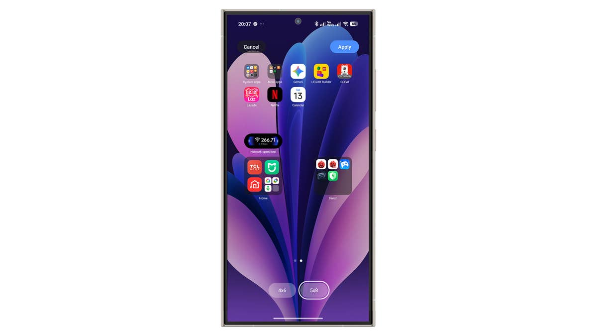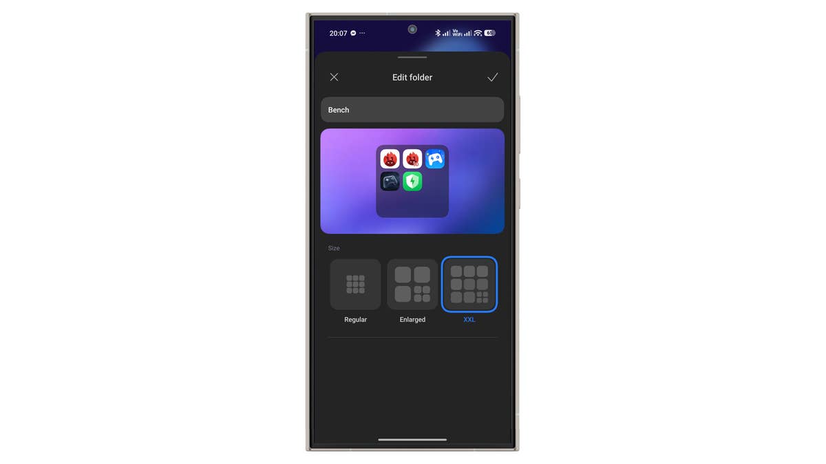 You can fit more apps on the home screen thanks to a new 5×8 layout. This means more space for apps and widgets. Folders now come in XXL, Large, and Regular sizes, all supporting direct app launching without opening the folder.