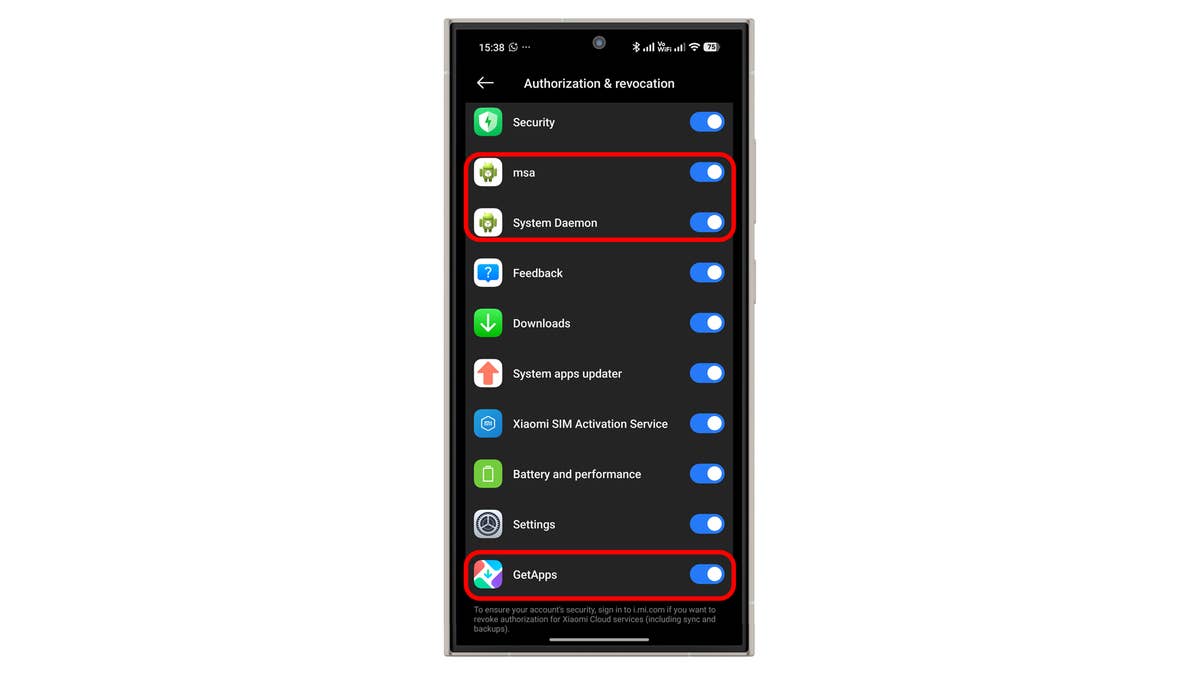 - Toggle off msa/System daemon, wait 10 seconds, and confirm.