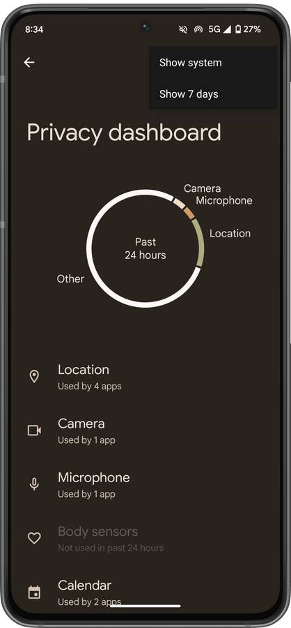 The Privacy Dashboard will be able to display data from the past 7 days, instead of the current 24-hour limit.