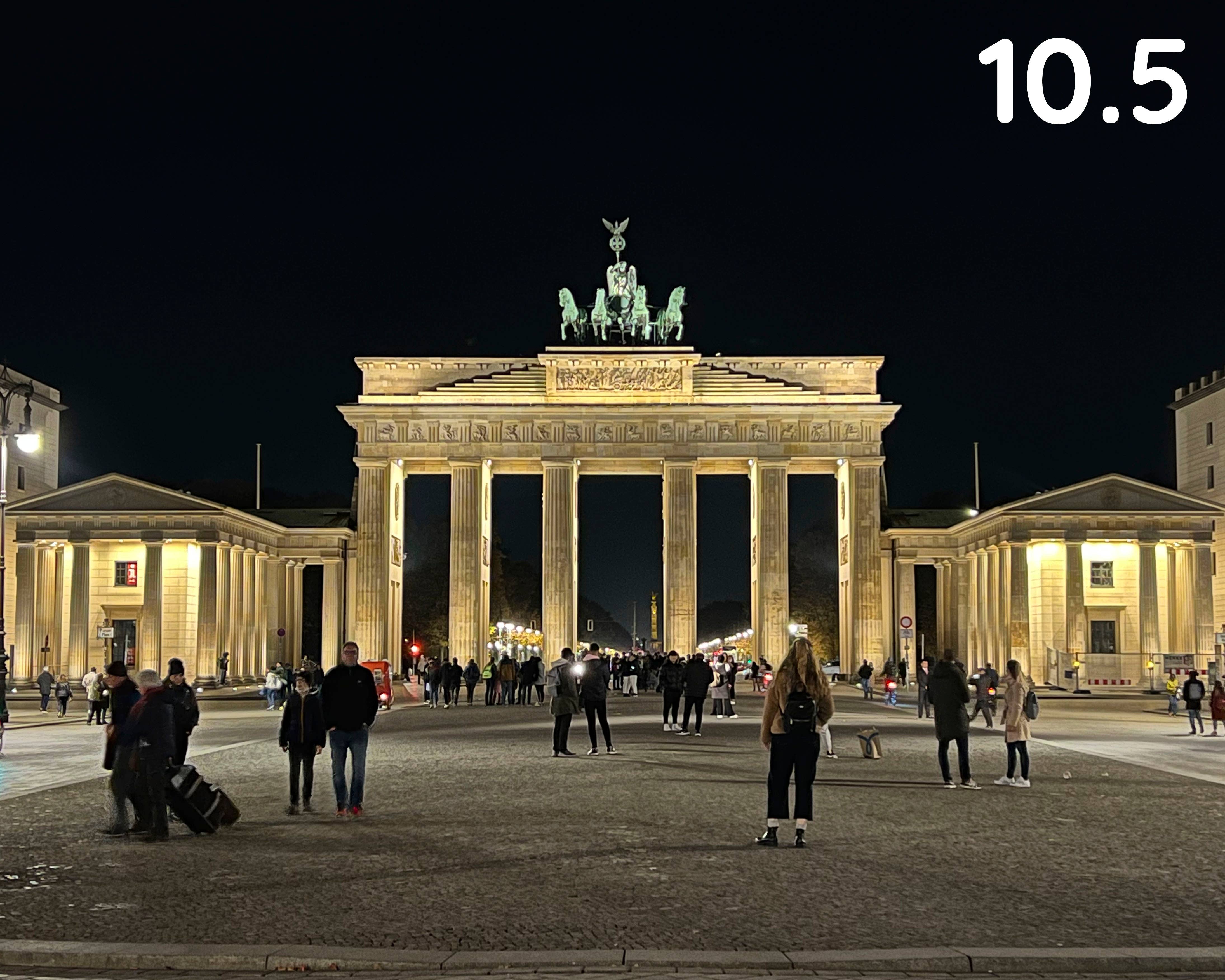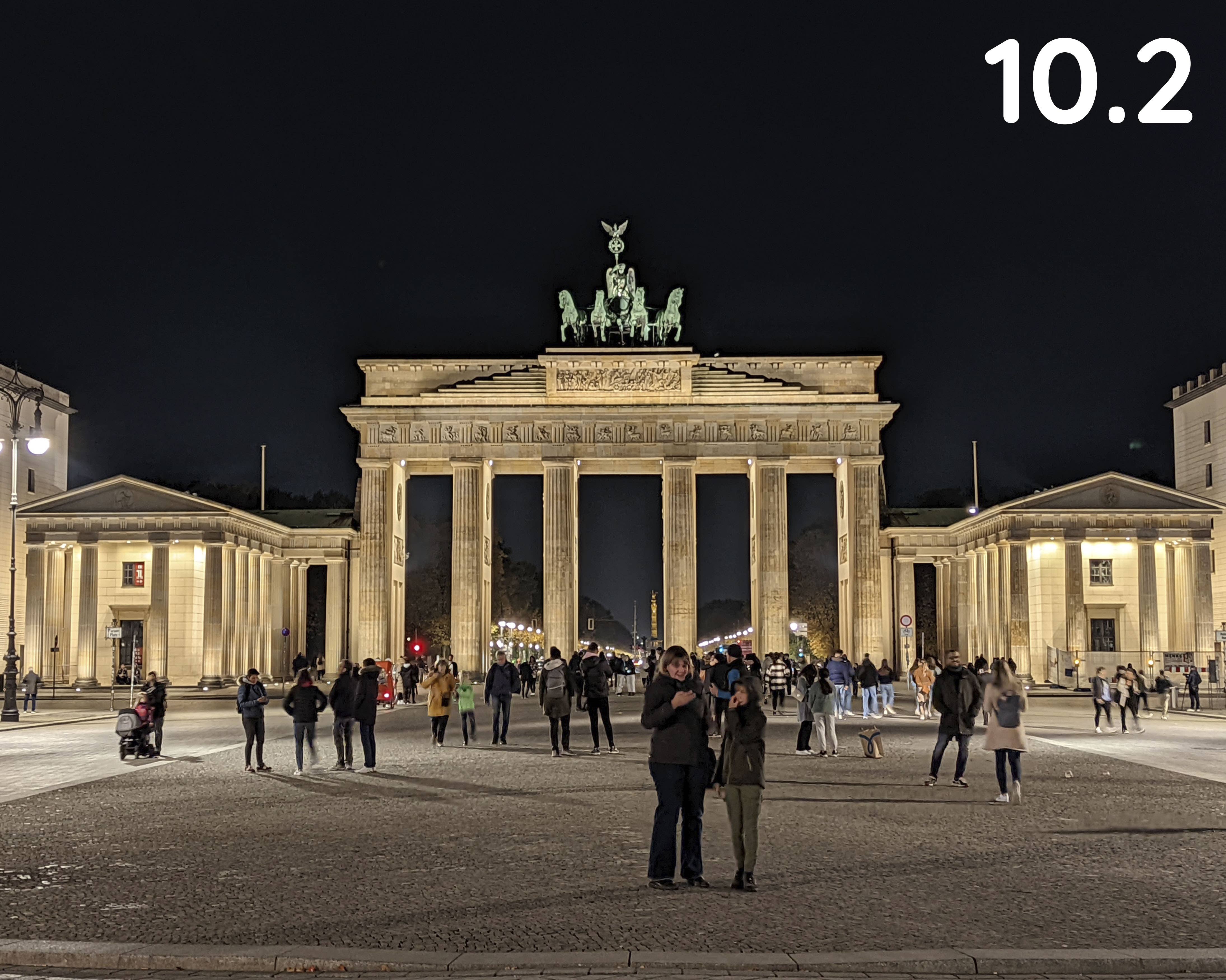 With even less light, high contrasts, and once again visiting the double zoom, this shot challenges smartphones to show just how well they can handle low light conditions and high brightness differences. Another challenge is the people in the square – can you detect the motion blur?