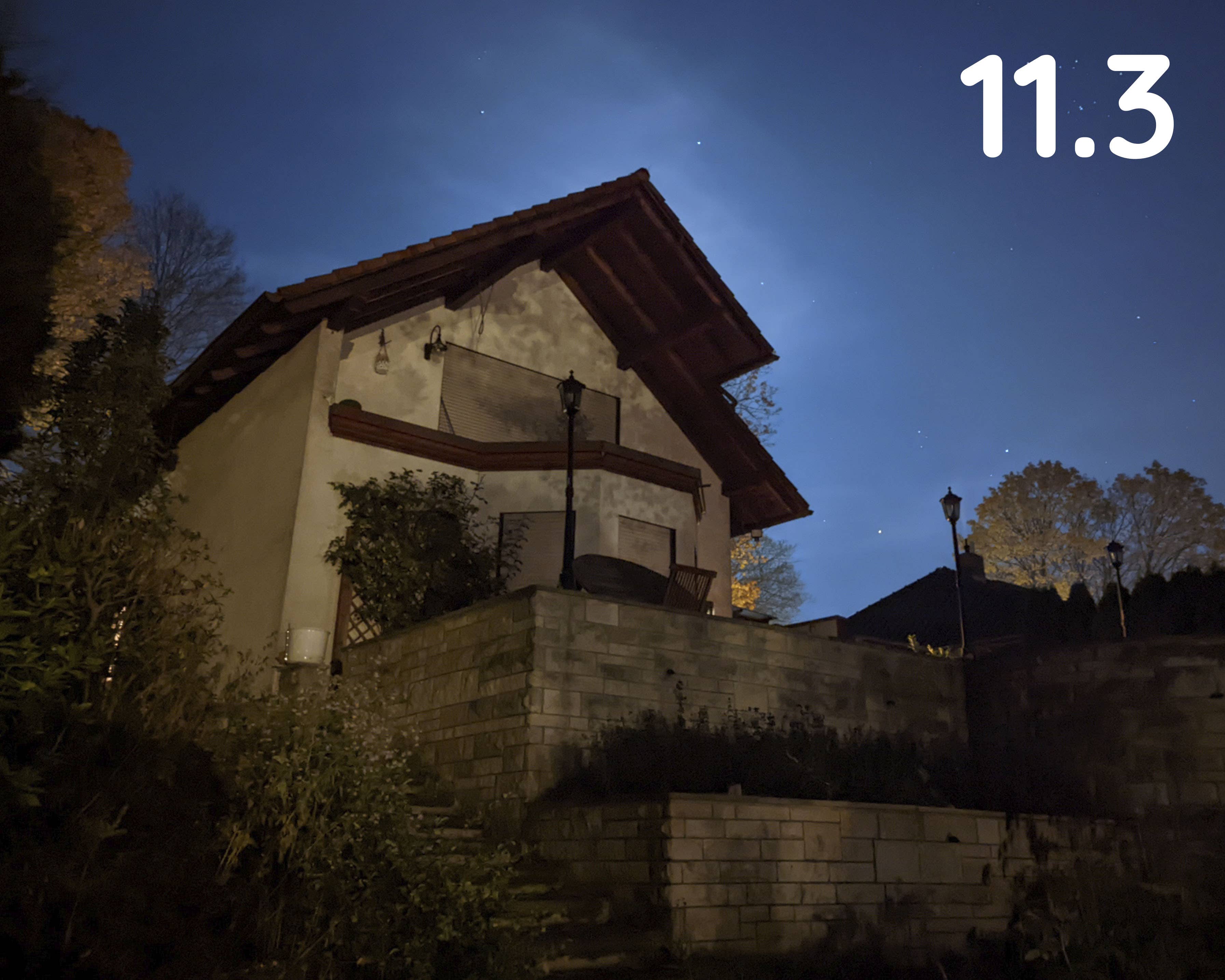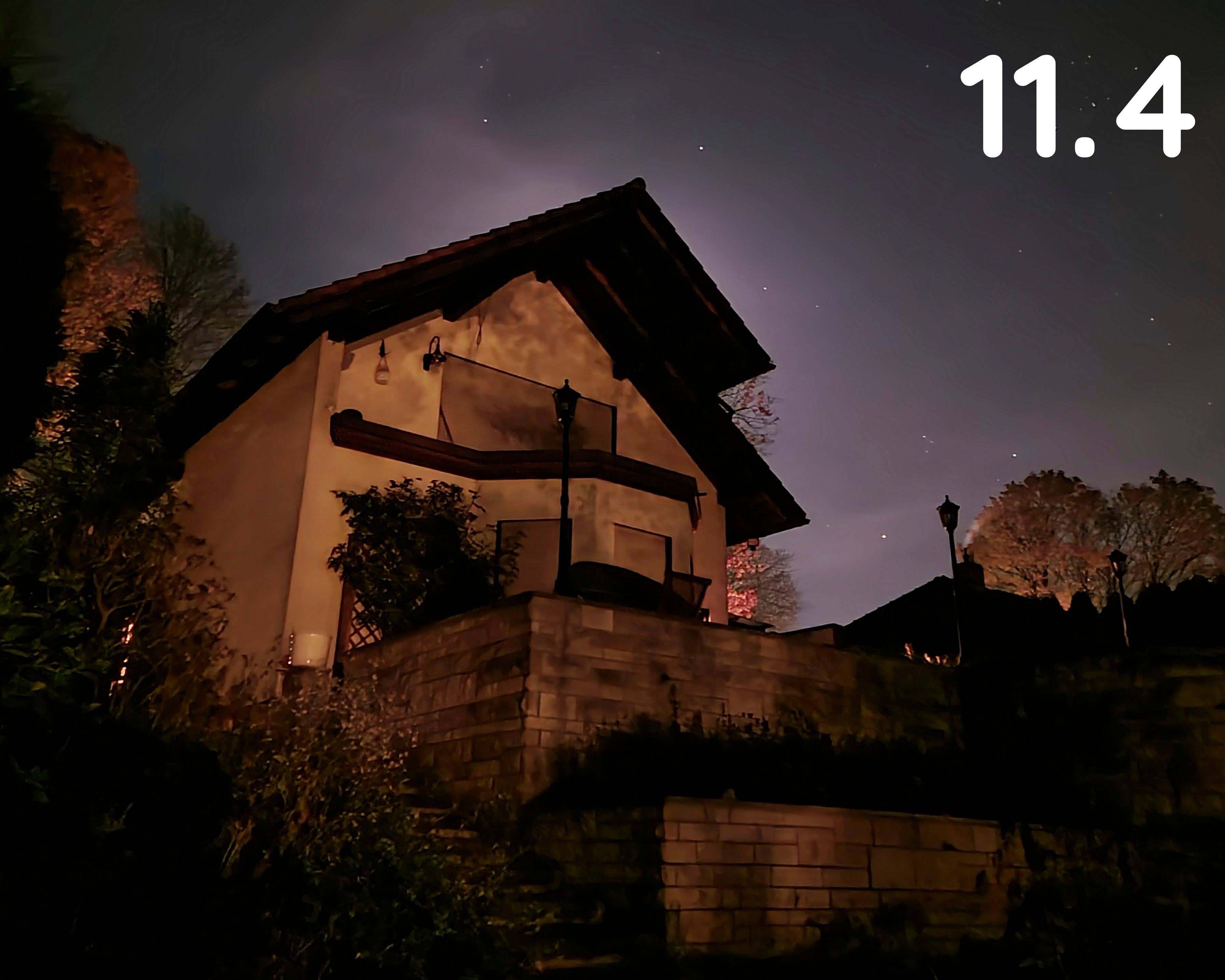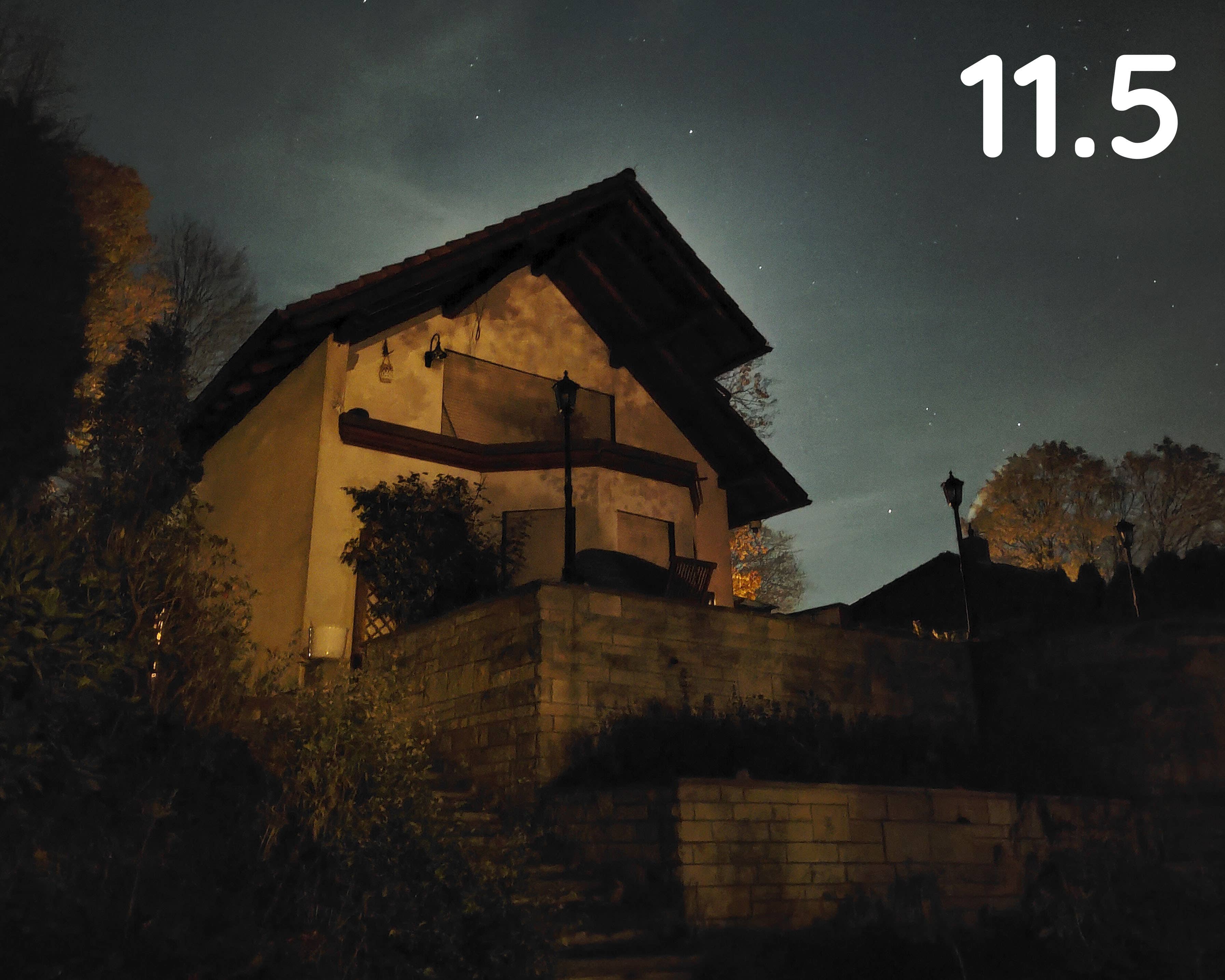 Last but not least we dive headlong into absolute darkness. With this blind test, it was so dark that I could hardly see where I was photographing through the optical viewfinder of the DSLR. The scenery is only illuminated by a couple of illuminated areas. It’s impressive how much better the smartphones all perform compared to the SLR, even if it is a bit more aged. We activated the night mode with maximum exposure time on all devices where available.