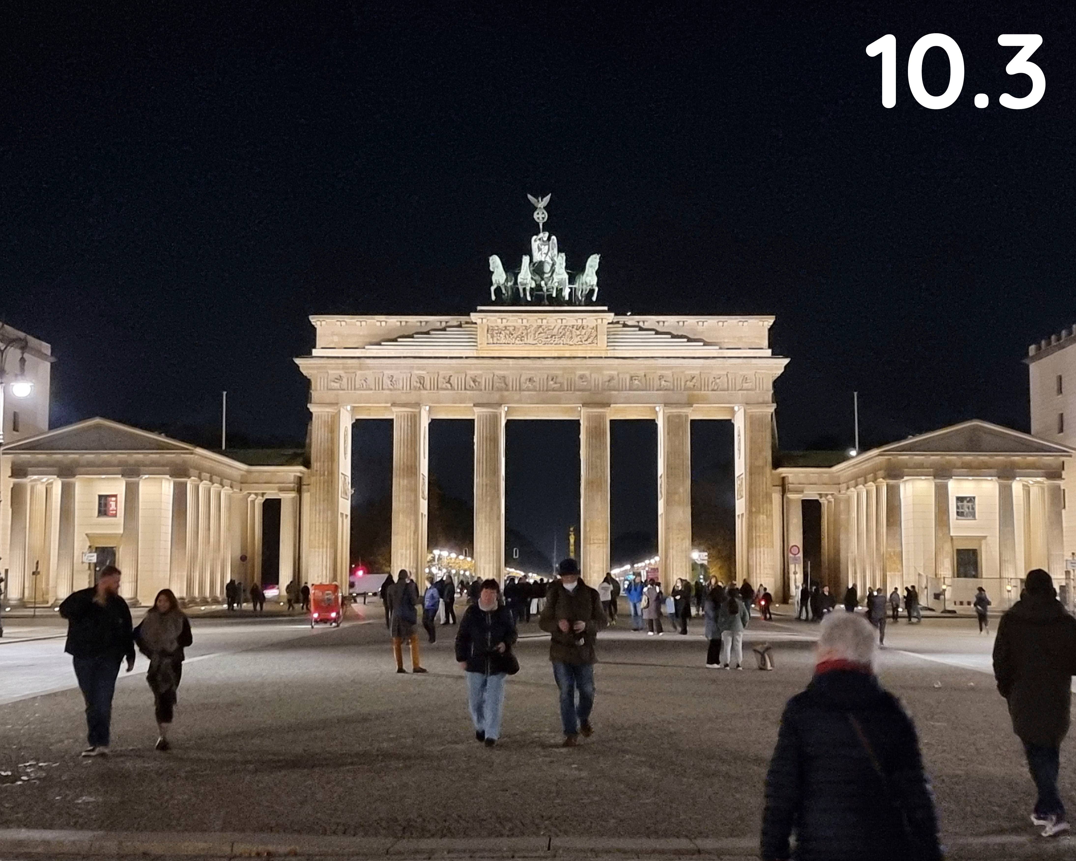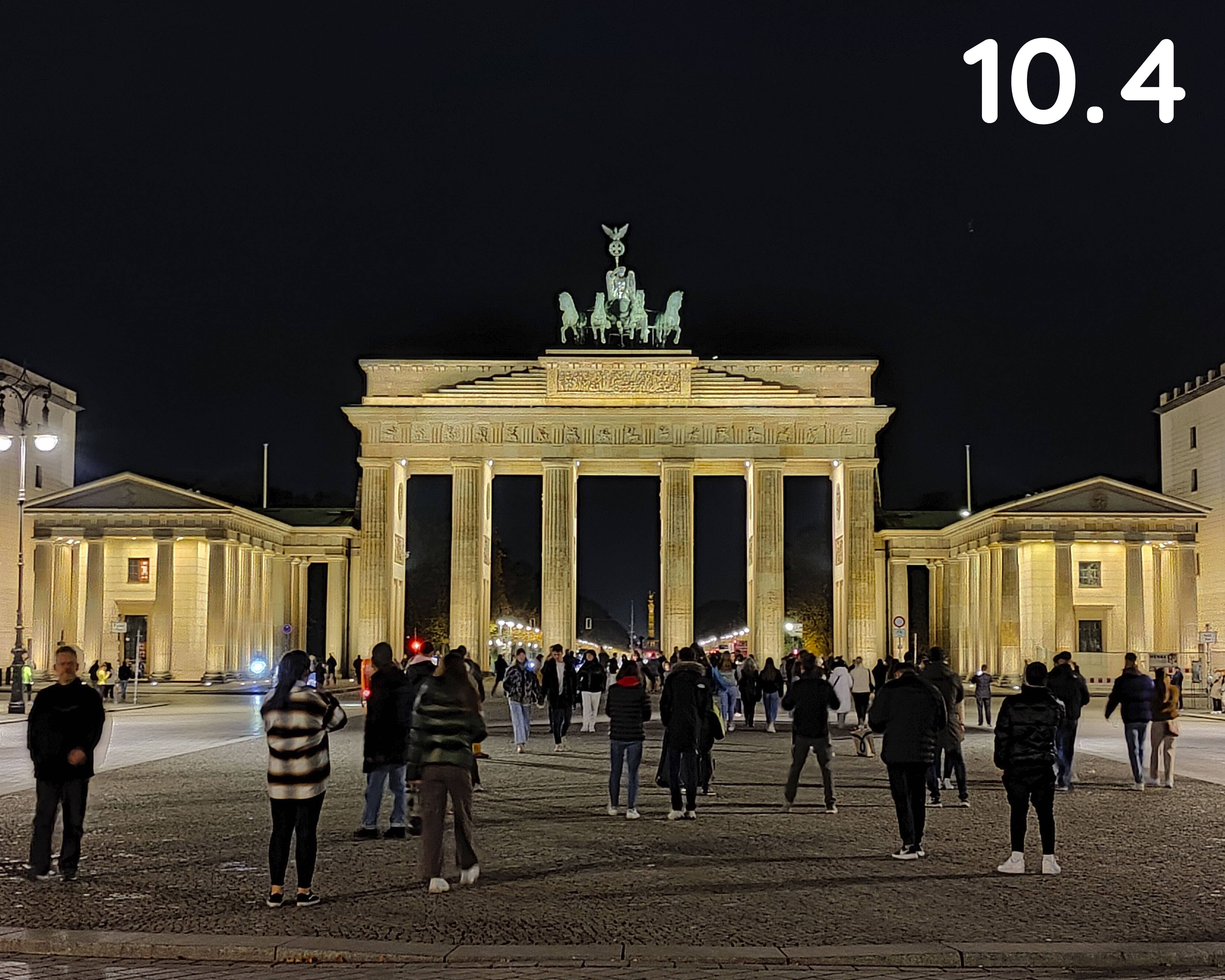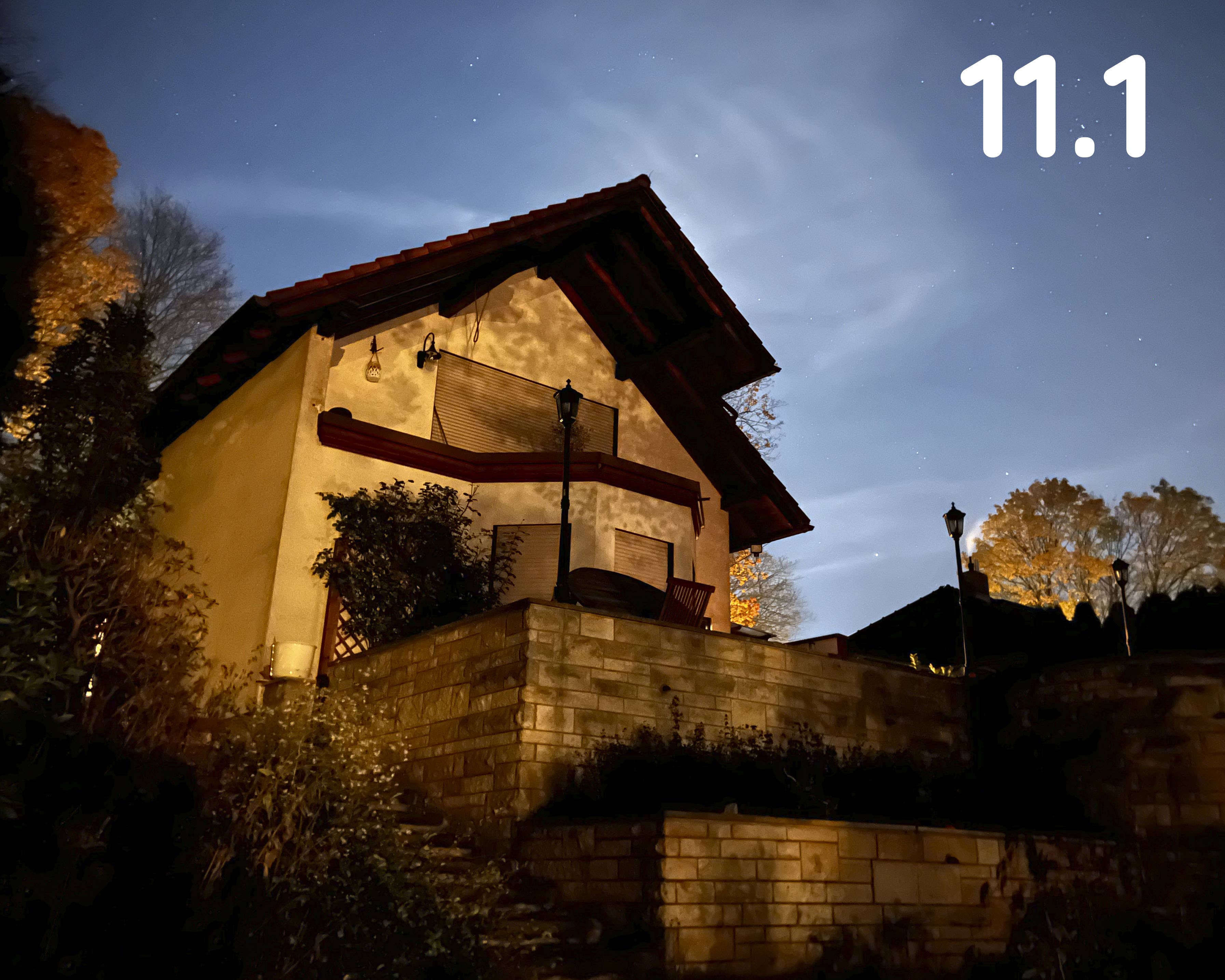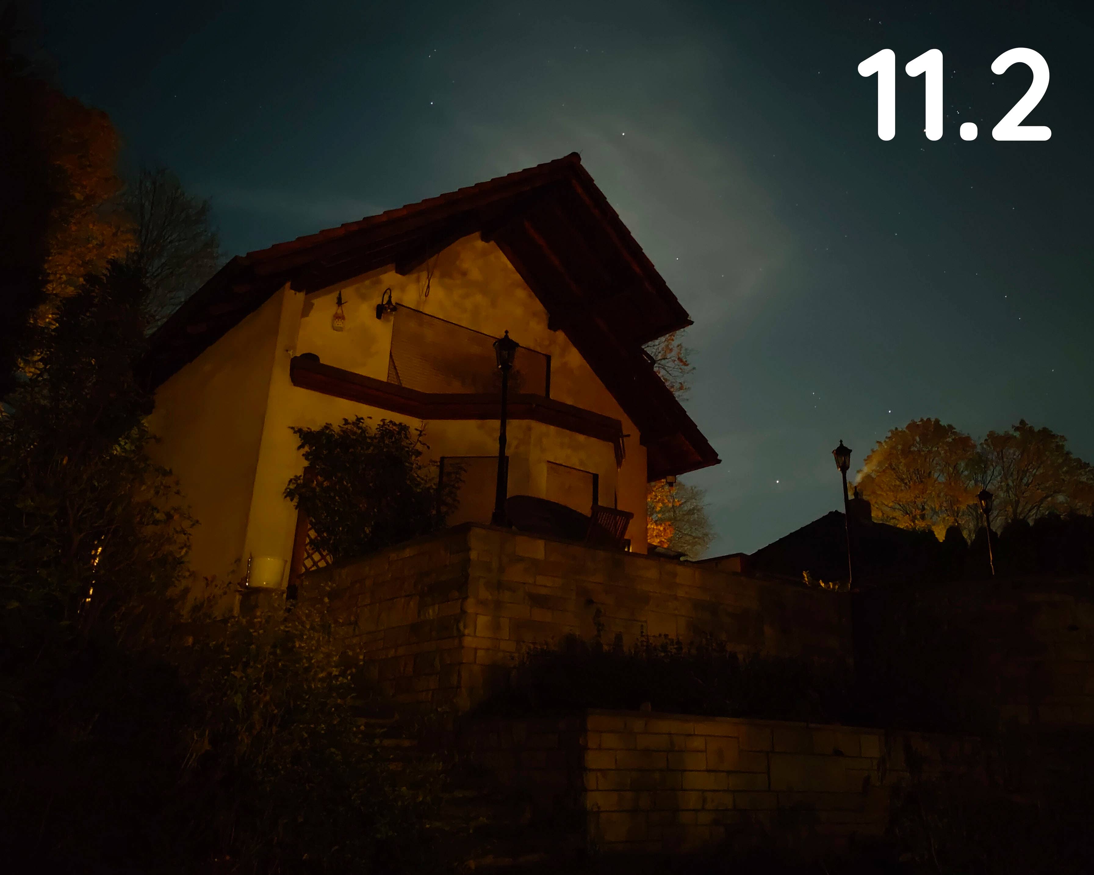 Last but not least we dive headlong into absolute darkness. With this blind test, it was so dark that I could hardly see where I was photographing through the optical viewfinder of the DSLR. The scenery is only illuminated by a couple of illuminated areas. It’s impressive how much better the smartphones all perform compared to the SLR, even if it is a bit more aged. We activated the night mode with maximum exposure time on all devices where available.