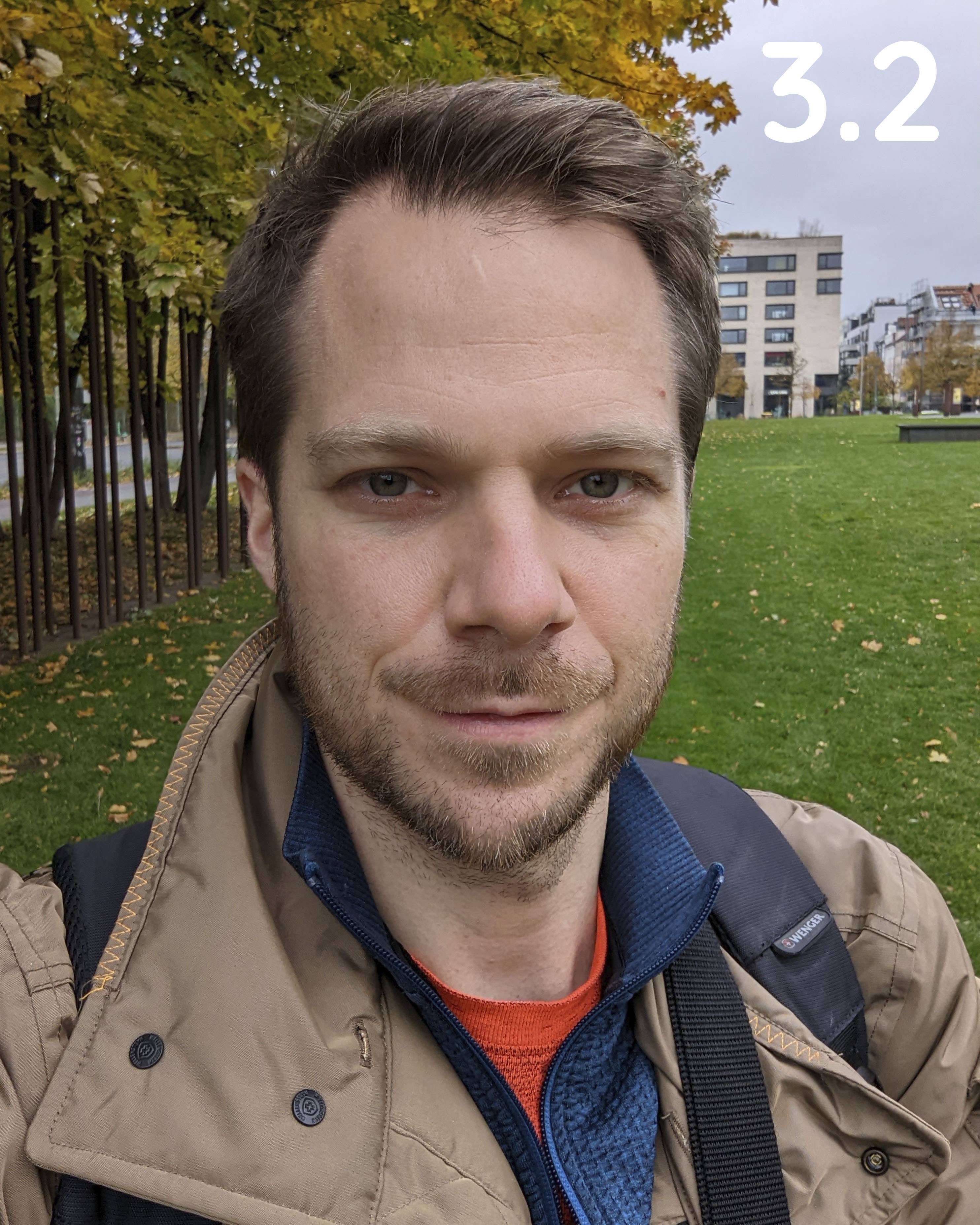 Of course, selfie cameras must not go missing when it comes to portraits. With the DSLR, the photo with our ultra-wide angle lens turned out a bit too wide-angle and therefore strangely distorted. -Admittedly, it wasn’t that easy to shoot a selfie with the 6D and the heavy 16-35 mm F2.8L III. Still, we’ve left it in this comparison as a reference for color reproduction.