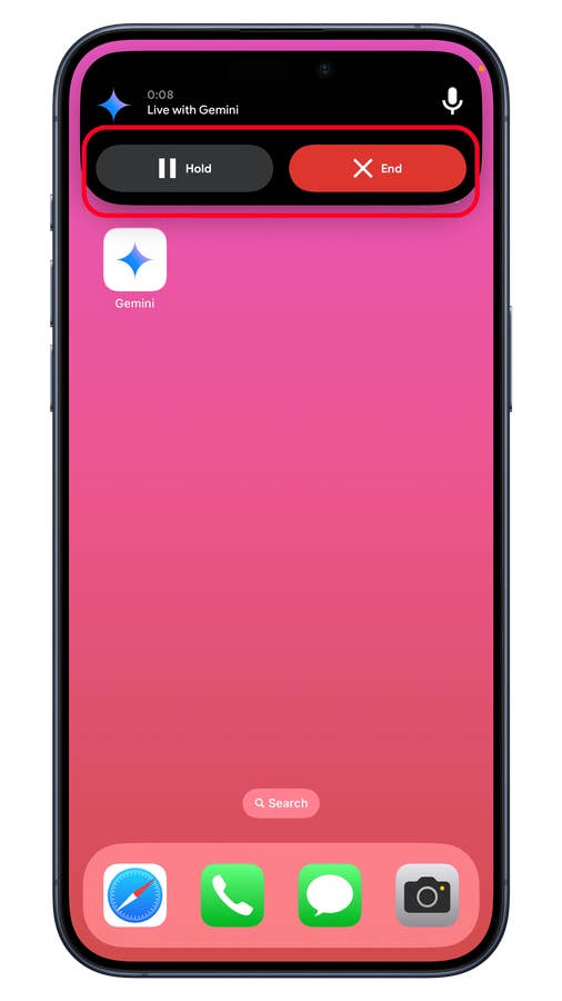 - Minimize the app. You should see the Gemini Live activity on the dynamic island.