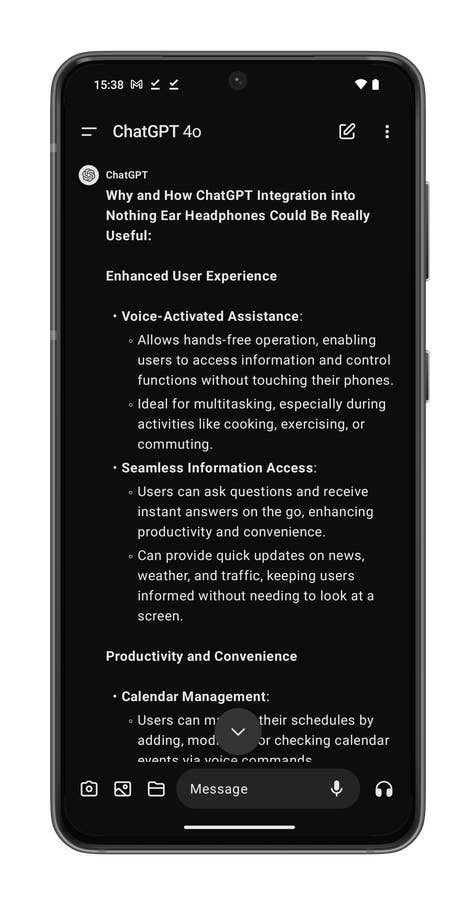Have you tried using ChatGPT with your Nothing Ear wireless earbuds? What do you think of this integration? What scenarios could you envisage useful interaction with ChatGPT via your headphones?