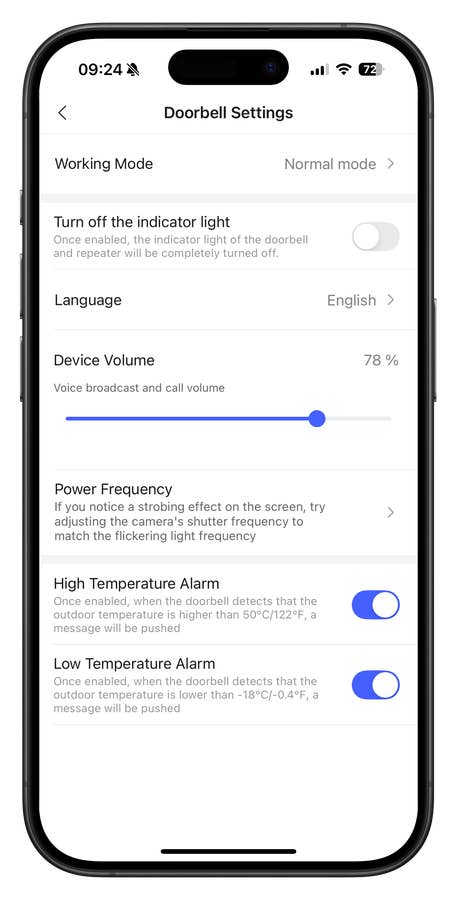 Overall, the video quality and the range of tracking functions are impressive. And so we come briefly to the 2-way audio. This enables us to speak to people outside the door from anywhere in the world. In combination with a smart door lock, we can even let visitors into the house without being there. The sound quality is adequate and is definitely sufficient for short conversations. The voice distorter is a little “gimmicky” – the privacy it provides is probably lost in most houses anyway, by looking at the doorbell sign.