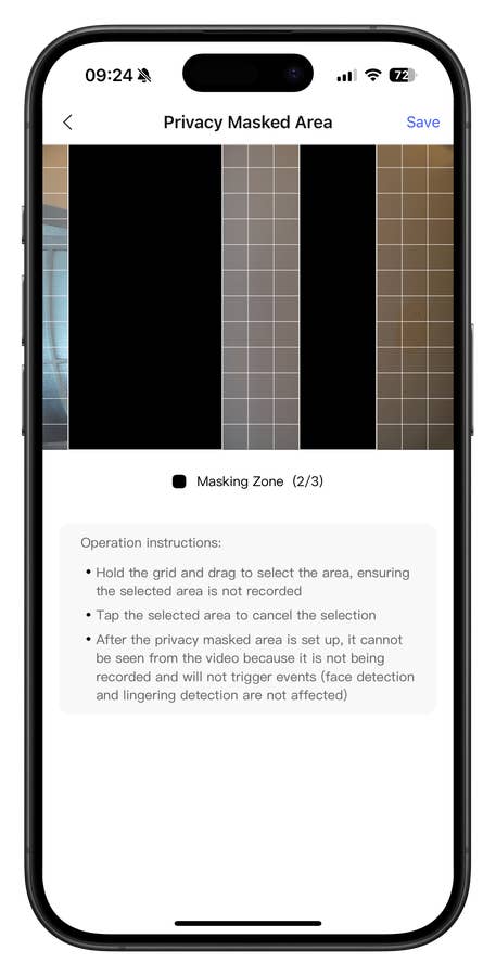 For more privacy or fewer notifications, Aqara also offers the option of deactivating certain areas of the camera image. These are then blacked out, but detection still works thanks to the integrated mmWave radar sensor.