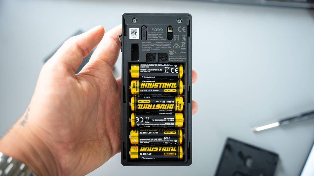 The Aqara Doorbell Camera Hub G410 is somewhat unusual in that the camera unit is battery-operated with six AA batteries, which are not rechargeable out of the box. According to the manufacturer, the battery life is up to five months. However, Aqara assumes only 10 activations per day. If people regularly walk past your front door or you have a lot of visitors, the battery life will decrease accordingly.