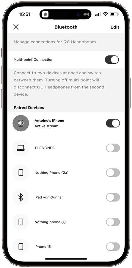 The Bose QC Headphones supports Multipoint Bluetooth connectivity. You can pair it with two devices simultaneously and it works very well. The physical controls are also well thought out. If you’ve owned a Bose QC 45, you won’t feel out of place.