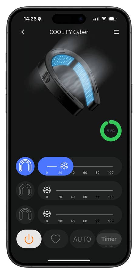 According to the manufacturer, the Coolify Cyber can run for up to 15 hours. The neck air conditioner accepts a 20W charge and can be used while recharging.