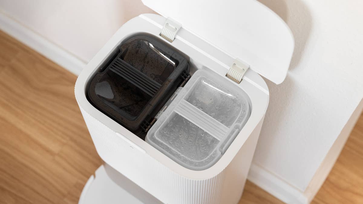 Of course, the feature-rich docking station, which contains a freshwater tank, a dirty water tank, and a 3.2 L dust bag is also part of the setup. In addition to a self-emptying function, the docking station also cleans the mops with water heated to 80 degrees and adds its own cleaning agent. What is new, however, is the two UV lights to combat any remaining bacteria on the mops and the dust container after the self-cleaning process. Once the cleaning process is complete, the docking station dries the mopping equipment using hot air.