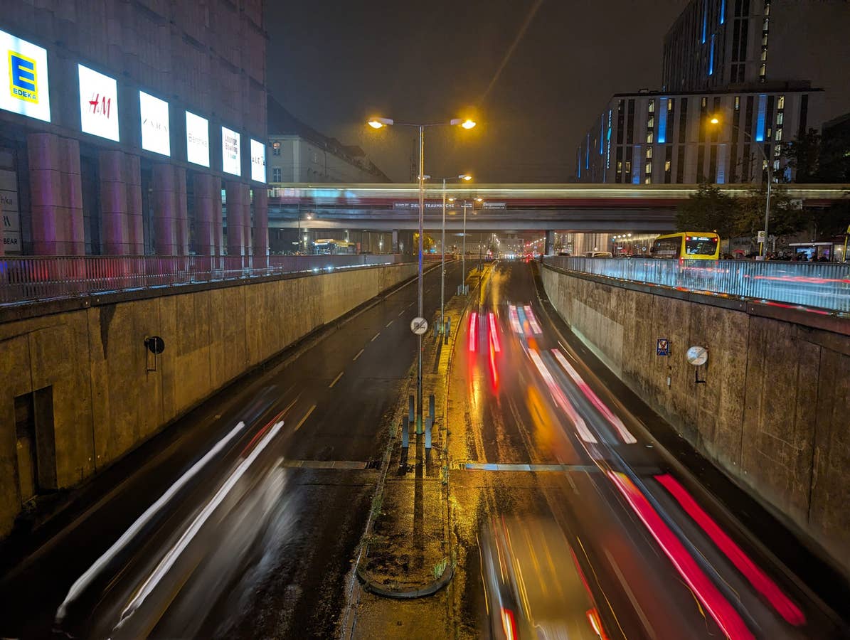 The fact that daytime shots succeed without exception probably doesn’t need a special mention. So, no matter if zoom, macro, or wide-angle—everything as you would wish. But night shots are also pleasing. I have to admit that the weather conditions in the pouring rain were anything but optimal. Nevertheless, the night photos from the Festival of Lights look great across the board.