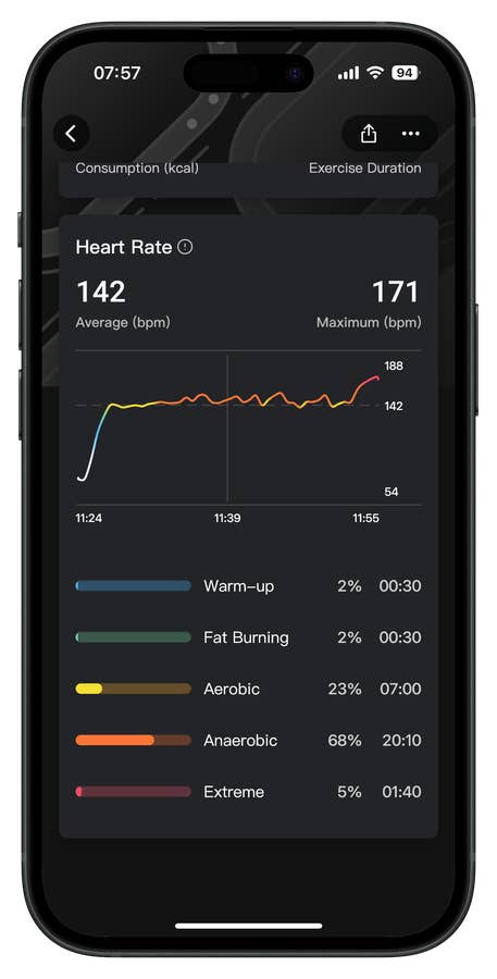 Here’s a quick breakdown of the RingConn Gen 2’s heart rate monitoring during an indoor run. It clocked in with an average heart rate of 146 bpm and a max of 173 bpm. These numbers stack up well against the competition: Wahoo’s chest strap showed 150 bpm average and 175 bpm max, Whoop logged 146 bpm average and 174 bpm max, and the OnePlus Watch 2R hit 151 bpm average and 176 bpm max. Bottom line? The RingConn Gen 2 is reliable and holds its own among the competition.