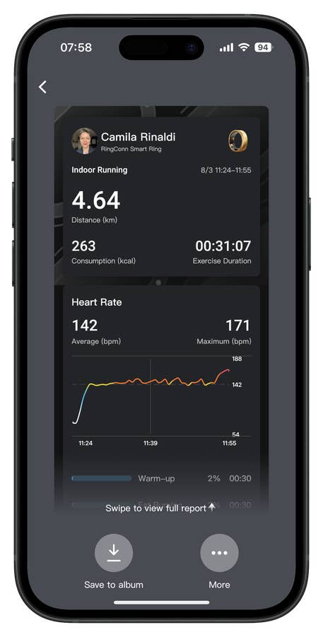 The RingConn Gen 2 offers a limited selection of workout modes—just four: outdoor and indoor running, outdoor cycling, and walking. If you’re looking for more advanced fitness tracking, this may not be the right device for you. Additionally, since the ring lacks built-in GPS, you’ll need to have your phone with you during outdoor activities.