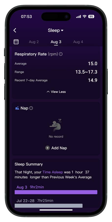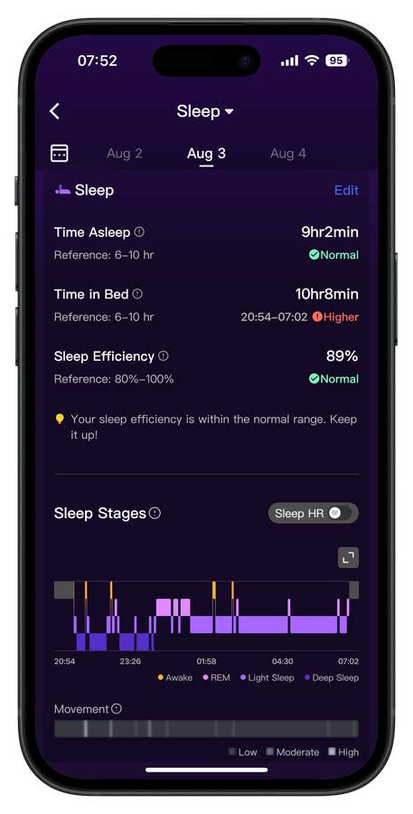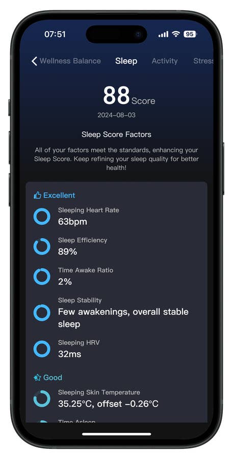 First, it’s incredibly comfortable to wear the smart ring to sleep, which is a major plus due to its form factor. Second, the sleep report provided by this smart ring is one of the most extensive I’ve tested.