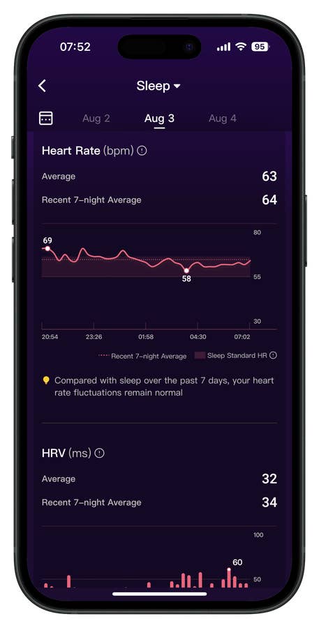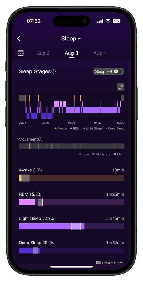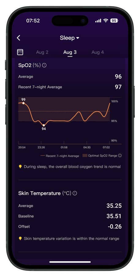 This detailed data highlights patterns and trends in your sleep. Monitoring heart rate and HRV can show how well your body recovers overnight, while SpO2 levels indicate how efficiently oxygen is being carried to your extremities, reflecting your breathing quality. Tracking sleep stages and efficiency can pinpoint issues like insufficient deep or REM sleep, allowing for adjustments in habits or environment.