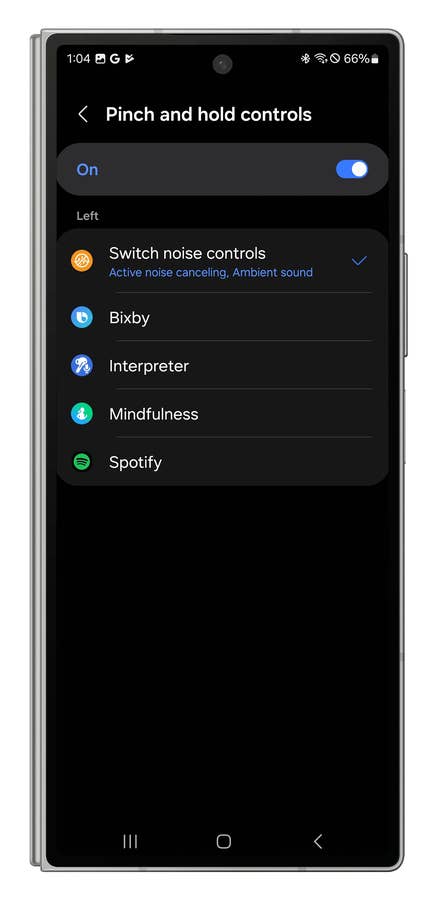 The Galaxy Buds 3 Pro is equipped with touch and haptic controls. Touch controls simply involve sliding your finger along the front of the earbud stem to raise or lower the volume. These controls are not customizable but you can change the haptic controls. These involve pinching the earbud stem. I found the possibilities to be rather limited.
