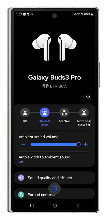The Galaxy Buds 3 Pro features both manual and automatic Active Noise Cancellation. In manual mode and ANC intensity set to full, it’s total silence. I haven’t reviewed Samsung earbuds in a long time and I was very surprised by the ANC’s effectiveness.